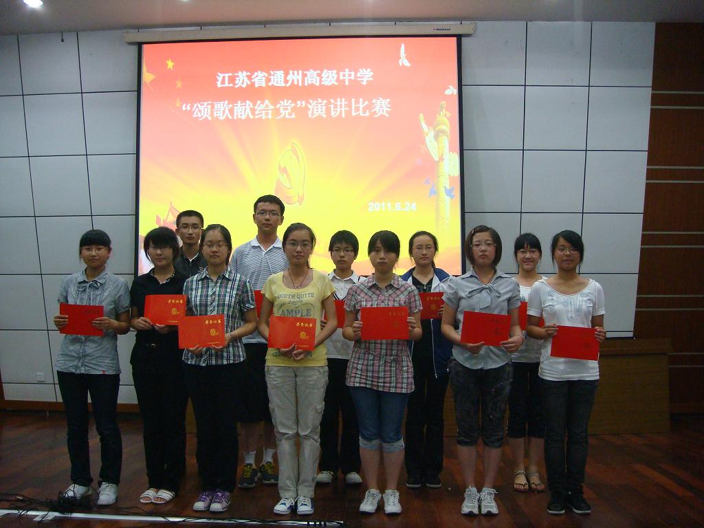 为庆祝中国共产党成立90周年,重温和歌颂党的光荣历史和丰功伟绩,继承和发扬党的优良传统,讴歌改革开放和社会主义现代化建设的伟大成绩,进一步激发我校学生爱党爱国热情,6月24日下午,政教处、团委会在艺术楼报告厅举行了“颂歌献给党”演讲比赛。