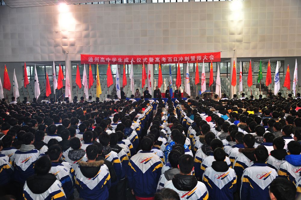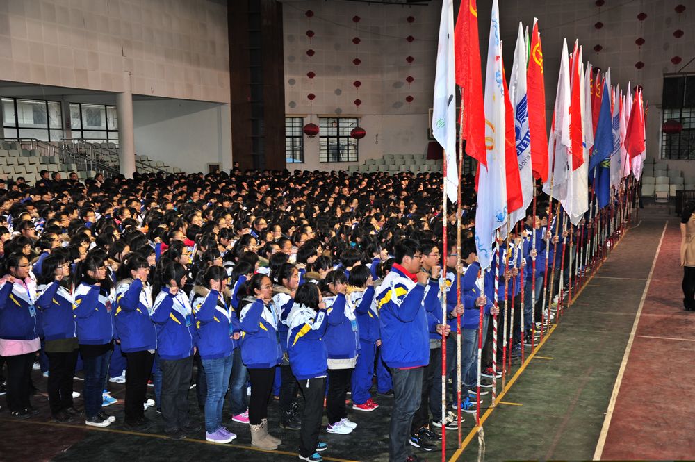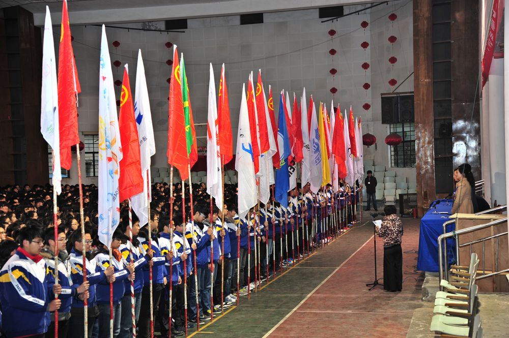 2013年3月1日下午 ,买球开户高三全体教师和学生以及买球(中国)领导在买球(中国)体育馆隆重举行2013年成人仪式暨高考百日冲刺动员大会。下午4点10分,高三年级各班举团旗、班旗组织进场。