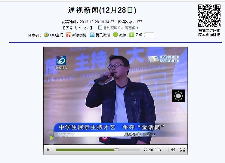 12月27日晚,在我校艺术楼报告厅内举行了第三届金话筒主持人大赛决赛。此前由团委会和学生会的学生干部组织了初赛,从高一、高二两个年级报名的40多名选手中选拔了20名同学进入决赛。