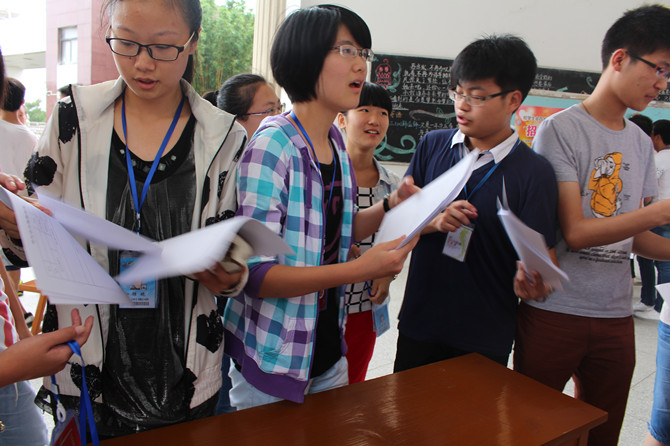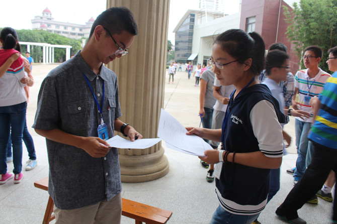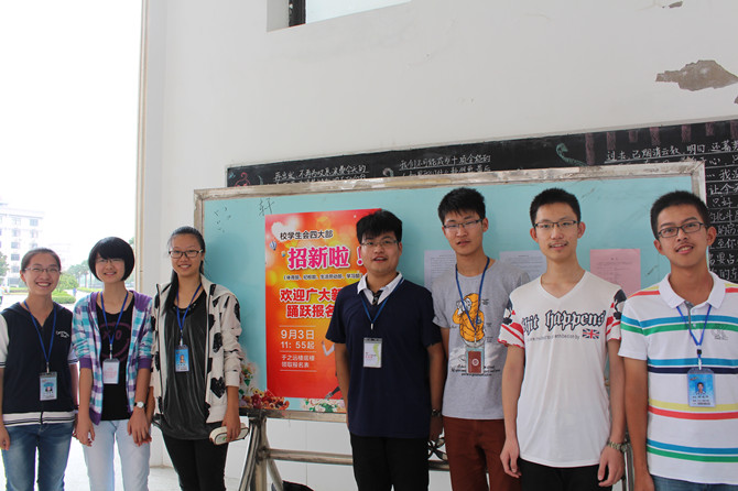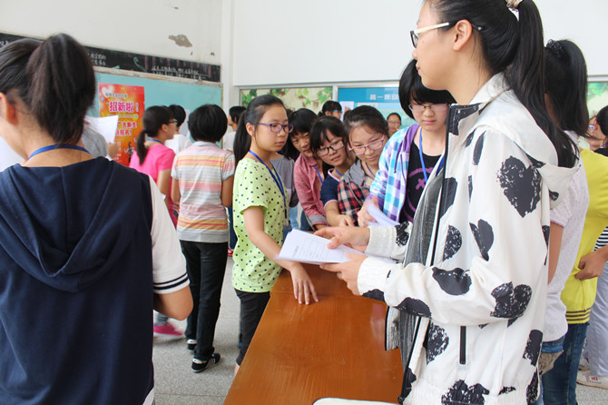 9月3日中午,工作小组成员们在之远楼楼下布置展台,展览标牌,向过往的高一同学们发放报名表,同学们也踊跃地咨询和报名,以至300份报名表供不应求。