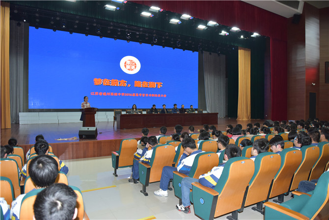 大会首先对在南通市第一次调研中表现优秀的70名同学(理科前50 ,文科前20)及进入高三后表现进步突出的20名同学进行了表彰,旨在表扬最近表现优异的同学,更在于激励更多同学以身边优秀的同窗为榜样坚持不懈努力学习。学生代表高三(9)班朱凤同学在发言中指出:幻想无可厚非,但幻想不能仅止于幻想。唯有埋下头来勤学苦干,梦想的光芒才会照进现实。通过分享对“百日太长,只争朝夕”的理解,她号召对高考既憧憬又紧张的同学们着眼现在,把握好当下的一分一秒,踏实稳健的向前。高三(8)班班主任管宏斌老师在发言中安慰了在一模中失利的同学,鼓励他们不必沮丧,失败并不可怕,因为在高考前的任何一次失败都是为了历炼自己,以便最后能以最完美的姿态应战高考。作为一名资深数学老师,他建议面对题海的高三同学以做研究的态度面对每一道题,并力图弄懂弄透。他同时强调了在备考中心态调整的重要性,因为高考是对解题能力与心理素质的双重考察。
