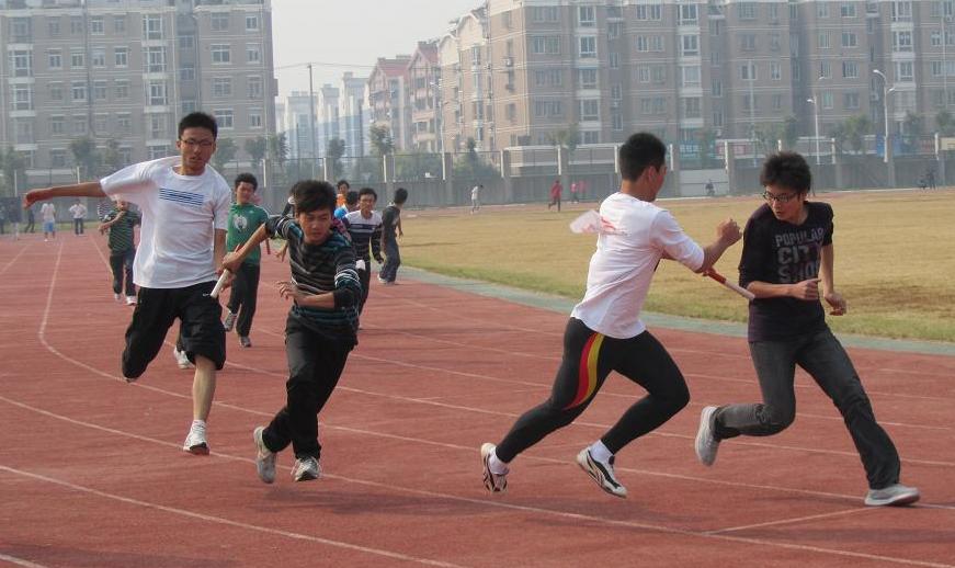 图为运动会接力比赛现场(校园记者部 高一(15)徐珺摄)