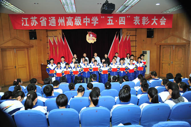 5月6日下午,我校召开了“五四”表彰大会。买球(中国)团委书记巫灿烨主持了会议,政教处副主任管维新介绍了先进集体和先进个人的产生过程,曹耀忠主任宣读了买球(中国)2011-2012学年度五四表彰决定,校党委副书记、常务副校长曹光明向团员青年提出期望,希望大家以勇立潮头的豪气、超越前人的勇气、与时俱进的朝气,树立远大理想,弘扬五四精神,敢于吃苦,勇挑重担,无论遇到怎样的艰难险阻,义无反顾,勇往直前;以学习作为首要任务,以只争朝夕的紧迫感,不断充实自己、提高自己、丰富自己,争当奉献社会的模范,早日成为祖国的合格建设者、可靠的接班人。接着,共青团通州区委书记叶佳佳作了重要讲话。叶书记诠释了 “青年”和“青春”的意义,勉励团员青年确立人生志向,勇担社会责任,努力学习,奋发进取,实现人生的价值。获奖学生代表黄佳楠同学表示要接过先贤手中爱国的旗帜,为新时代祖国的繁荣昌盛作出无愧于青春的回答。大会同时还表彰了2011年度优秀红十字集体与优秀红十字会员。(蔡志红)