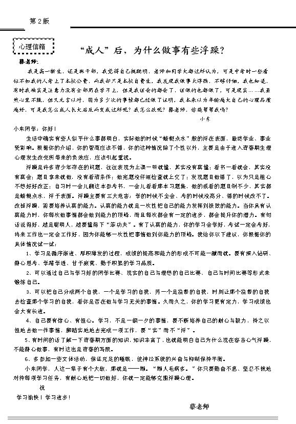 心理健康小报2009-2010学年度第一期第二版
