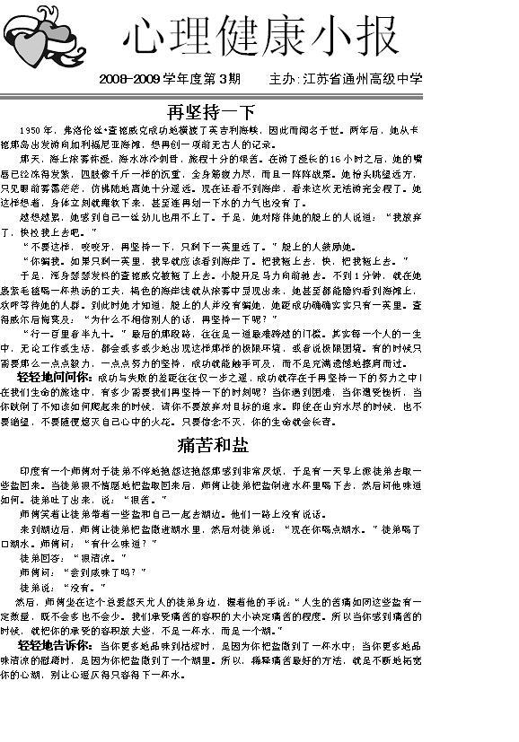 心理健康小报2008-2009学年度第三期第一版