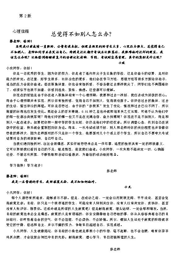 心理健康小报2008-2009学年度第四期第二版
