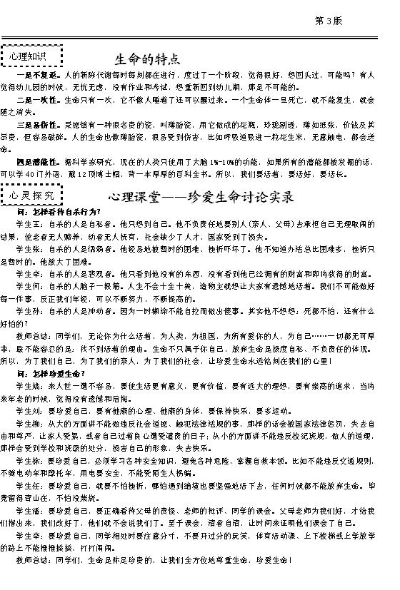 心理健康小报2008-2009学年度第四期第三版