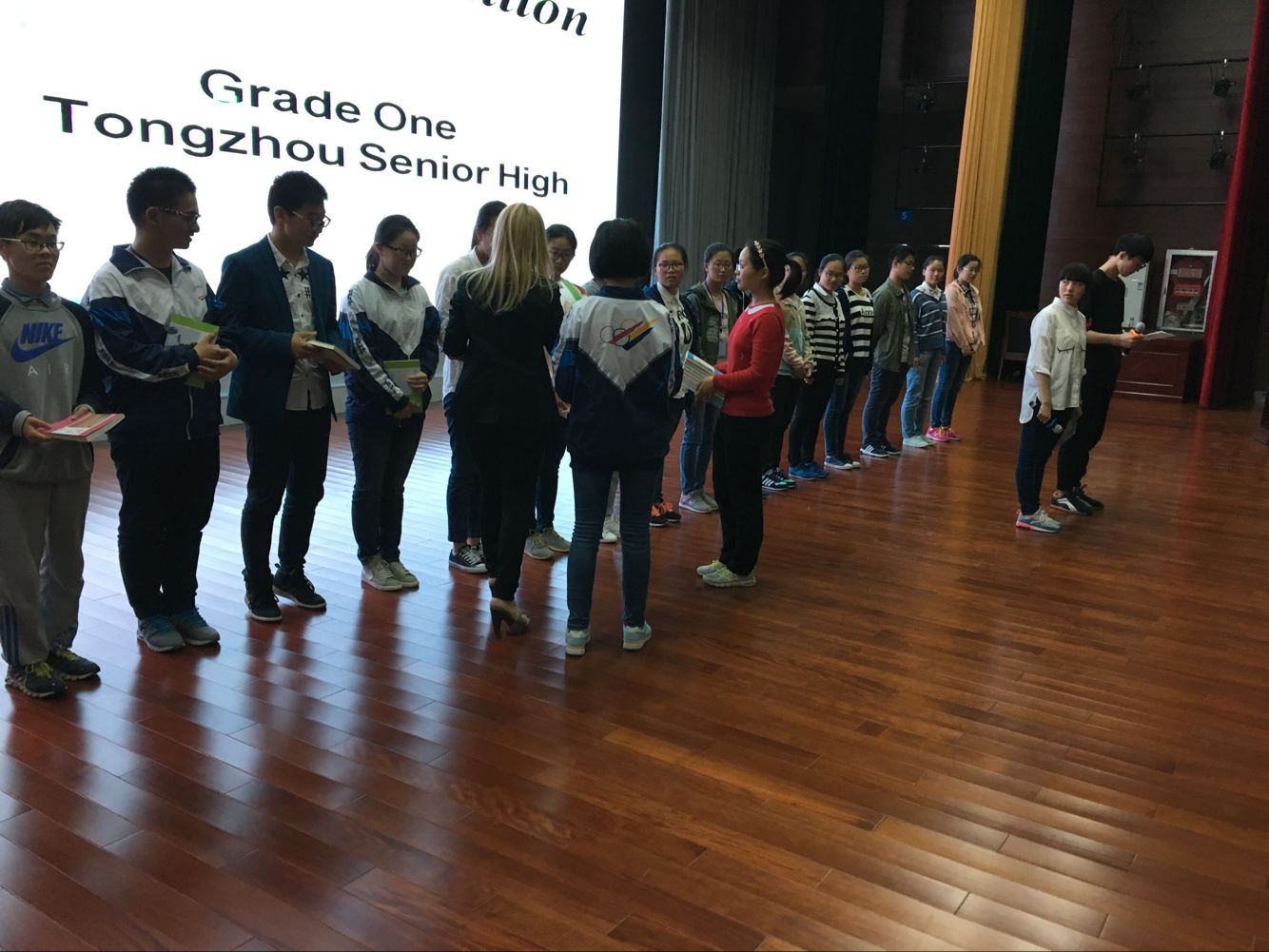 由高一年级英语备课组组织的新校区第一届英语演讲比赛,5月20日在涵礼堂举行。参赛同学从青春、梦想、友谊等话题,尽情发挥了他们的演讲才能和英语表达能力,激发了大家学习英语的兴趣和积极性。外教Inna老师和教研室沈晓彦老师参加了这次活动,并为获奖者颁发奖状和奖品。