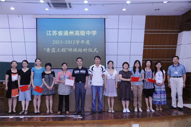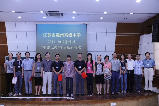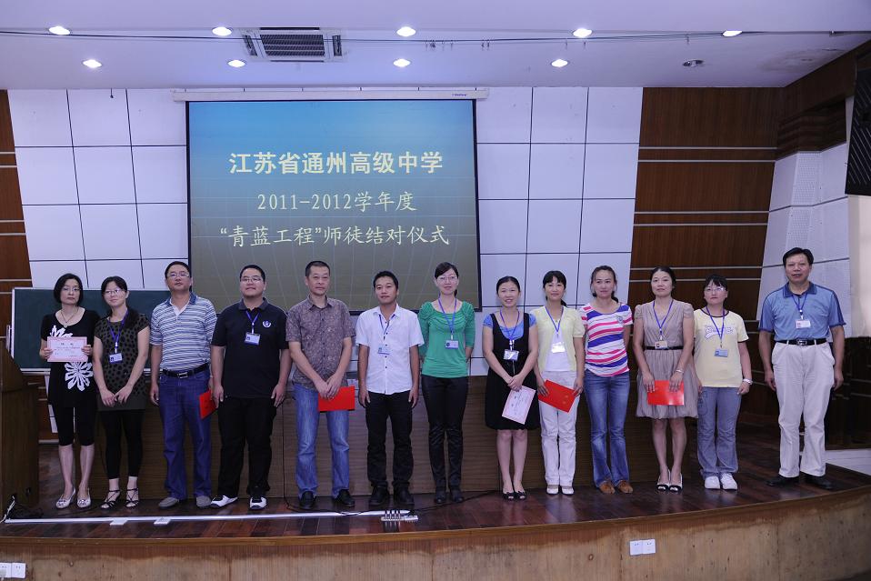 我校开展新学年“青蓝工程”师徒结对活动 时间:2011-09-23 来源:本站原创 作者:教务处 浏览:次 分享到: 9月17日上午,我校2011-2012学年度“青蓝工程”师徒结对活动在艺术楼报告厅举行。工会何炳华主席宣布了本学年度师徒结对名单,校党委副书记、常务副校长曹光明代表校长室向师傅颁发了聘书,并向师徒提出了殷切希望。图为部分师徒合影。 (刘永新摄) 打印正文 关闭本页 扫一扫关注通州高级中学