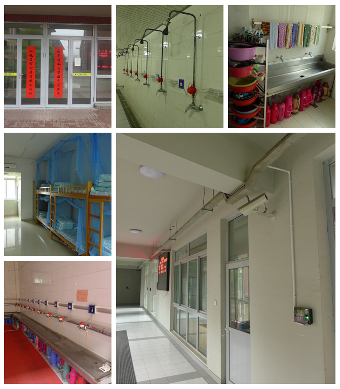 在宿舍,我们考察了他们的集体浴室、水房、学生宿舍、卫生间,了解了他们的住宿管理和公共设备管理。