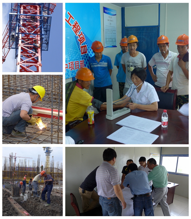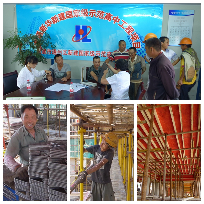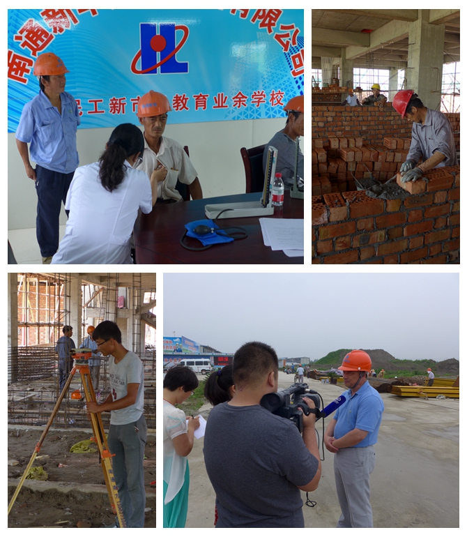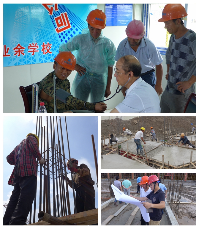 新校区建设工地上,骄阳炙烤,设备轰鸣,工人们正挥汗如雨,抢战工期。为确保工人身体健康,普及夏季室外高温作业环境下如何防暑降温的自我保护知识,8月2日一大早,瞿志明、陈红英、张启慧和赵伶俐四位校医就来到工地,为奋战在一线的施工人员进行健康检查、医疗咨询,发放“预防中暑知识”宣教材料,当日义诊施工人员一百多人。