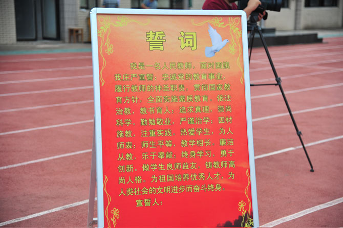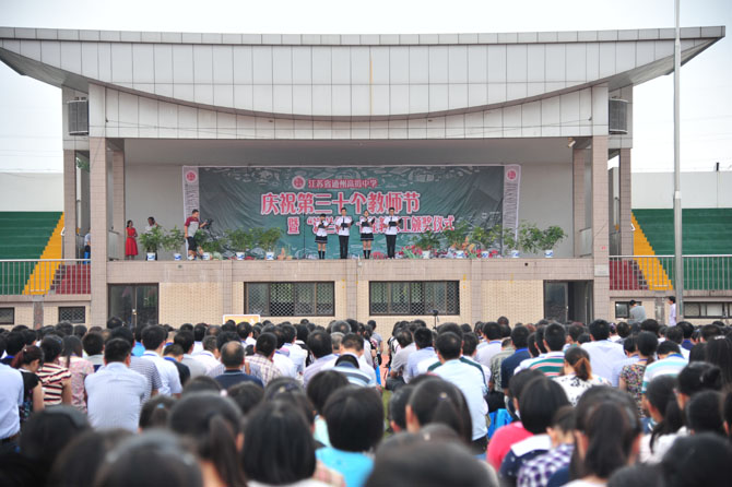 9月10日下午,全体教职员工及全校学生在操场集中,召开庆祝大会暨首届“滋兰杯”十佳教职工表彰大会。整个活动简朴而隆重,首先对十佳教职工进行了事迹宣读和颁奖,精彩的文艺表演穿插其中;随后季仲平校长作了重要讲话,他希望全体教职工向优秀学习,努力使教师节成为盛大的精神节日,增强立德树人、教书育人的荣誉感和责任感,带着教育的远见、智慧和视野以更大的热情投入工作;最后进行的教师集体宣誓,将整个庆祝活动推向了高潮。