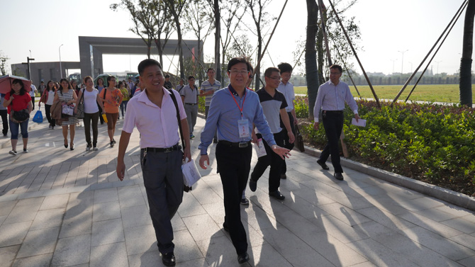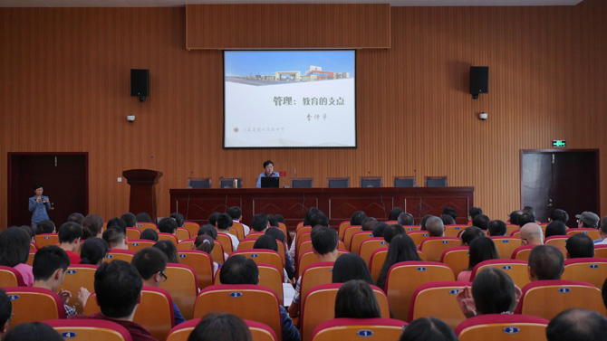 季仲平校长首先带领培训班教师参观了校园,详细介绍了新校区各项设施和功能;其后又在九楼视频会议室做了题为《管理:教育的支点》讲座,进一步介绍了我校办学历史和教育教学管理理念以及实践成果。上午第三课,考察团分别观摩了高三语数外等9门学科课堂教学,并与开课的9门学科老师进行了交流。开课学科以及信息技术、通用技术、音乐、美术等学科的教研组长和学科老师还应邀就本学科教育教学情况进行了深入交流。