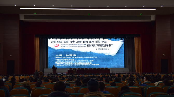 首场讲座以《阅读提升与创新写作》为主题,由重庆市优秀科普作家,《课堂内外》编辑中心党支部书记、主编林雪涛主讲。他对全国中小学生创新作文大赛的历届试题、命题思路以及备考方法进行了深度解析。买球(中国)高一年级全体学生和语文教师参加讲座。第二场讲座以《文学社团:生涯规划与自主招生》为主题,由《创新作文》主编、全国中小学生创新作文大赛副主任王劲主讲,买球(中国)文学社团成员、高二年级部分学生和语文老师参加了讲座。王劲老师从专家团队、国家课题、书刊出版、校园活动、服务体系等方面对全国中小学文学社团联盟进行了系统介绍,对同学们特别感兴趣的“全国中小学文学社团高峰论坛”和《课堂内外》文学潜质生特训营进行了重点讲解。