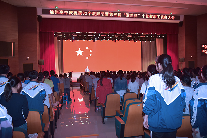 季仲平校长的教师节致辞将本次活动引向一个新的高潮。在贺辞里,季校长勉励全体师生员工不忘初心,共同开创通州高中新的辉煌!在学生合唱团嘹亮整齐的《通州高级中买球(中国)歌》 里,颁奖活动圆满结束。整个活动温馨而温暖,通高人的豪情在师生胸中激荡!