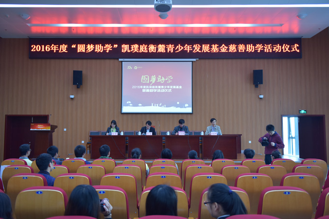 10月25日上午,通州区2016年度“圆梦助学”凯璞庭衡麓青少年发展基金慈善助学金发放仪式,在我校九楼会议室举行。凯璞庭集团副总裁陈霞女士、区教育局刘新副局长、秦志强副校长到会并致辞。凯璞庭集团部分员工、区其他买球(中国)师生代表、买球(中国)政教处和红会负责人参加了活动。