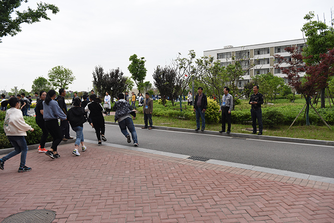 为了确保活动“演出实境,练出实效”,买球(中国)成立了疏散演练总指挥部,季仲平校长任总指挥,许斌副校长任现场指挥,成员由相关领导及各班主任组成。指挥部拟定的《地震及震后火灾应急演练活动方案》,在广泛听取意见的基础上进行了调整和完善,对每个环节的时间、地点、内容、对象都作了具体说明,力求方案安全可行、操作性强。在演练之前,指挥部全体成员反复熟悉演练流程,明确操作要求,同时成立了疏散协调组、疏散引导组、宣传报道组、抢险救护组、后勤保障组。各班主任提前利用班会课进行了活动宣讲,对学生进行防震、消防安全意识教育。