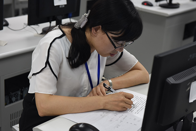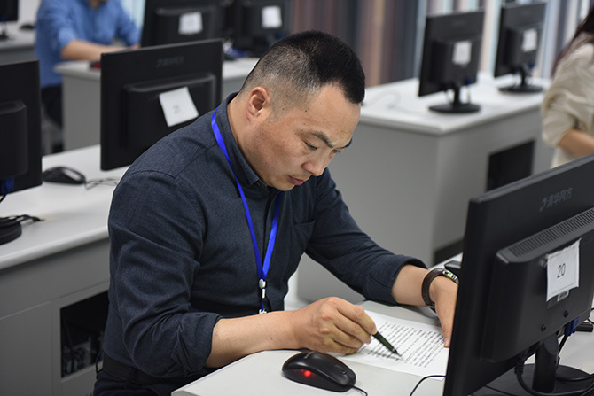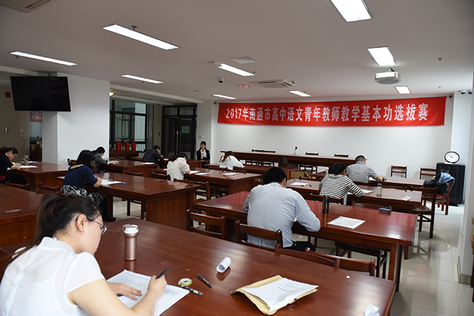 依据《江苏省基础教育青年教师教学基本功大赛高中语文比赛方案》要求,本次比赛由通用技能和专业技能两部分组成。通用技能包含粉笔字、即兴演讲、教学设计与课件制作、说课等四项内容,专业技能包含古文句读与翻译、古典诗词鉴赏文章撰写两项内容。比赛全方位考核选手的专业素养和教学智慧,来自南通大市的30位参赛选手展示了扎实的基本功和较强的心理素质。南通市教科院按照省基本功大赛的要求,制定了详尽的比赛方案,对比赛过程严格把控,保证了赛事的公正、公平。