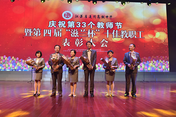 表彰第四届“滋兰杯”十佳教职工是整个晚会最隆重的环节,两名学生代表为获奖者深情宣读了颁奖词。赵晓莉、瞿淑霞、张春明、张建、倪荣伟、孙红兵、王先圣、曹向红、钱小华、蔡志红这十位在各自岗位上踏踏实实、孜孜不倦的老师,收获了荣誉和称赞。买球(中国)邀请了十位退休老前辈为“十佳”获得者颁奖,王先圣老师作了简短的发言,表达了一位热爱教育、心系学子的教师的心声。