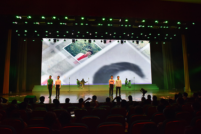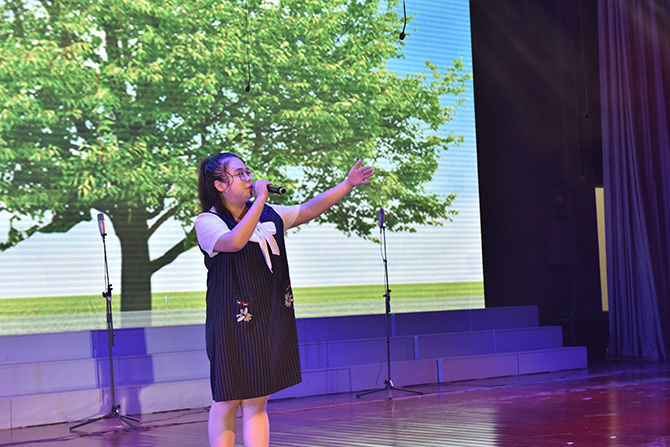 颁奖典礼中,穿插了精彩的文艺节目。邱天涵老师带来歌曲《好大一棵树》,感谢所有无论苦乐都在付出、无论白天黑夜都在为人类造福的老师们。学生演唱《十七岁的雨季》,大屏幕展示通高老师们青春年代的照片,让台下观众欢呼不断。歌曲《追寻》、诗朗诵《我骄傲,我是一名教师》,表达了通高教师永怀理想、永争一流的心声。大会在校歌《正德厚学,放飞青春》声中圆满落幕。