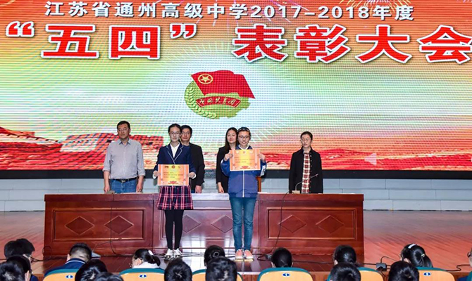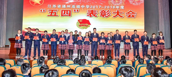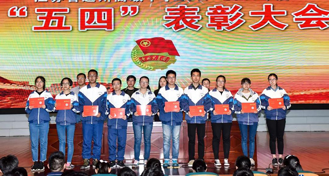 大会在庄严的国歌声中拉开帷幕。秦志强副校长首先致辞,他对获奖同学表达了热烈祝贺,对他们在同学中发挥模范带头作用提出殷切希望。政教处副主任王建军老师介绍了先进集体和先进个人的评选过程。在优秀团支部的评选中,校团委对各团支部工作进行了量化打分,最终在三个年级共选出17个优秀团支部。政教处主任、团委书记巫灿烨老师宣读了“五四”表彰和“五八”红十字表彰决定,号召同学们弘扬“五四”精神,培养青少年应有的良好品质。在与会领导给优秀团支部、优秀社团、最佳宿舍等先进集体和先进个人颁奖后,学生会纪检部部长张宸浩代表获奖同学发言,他倡议大家发扬“五四”精神,担负起一个高中生应有的责任。