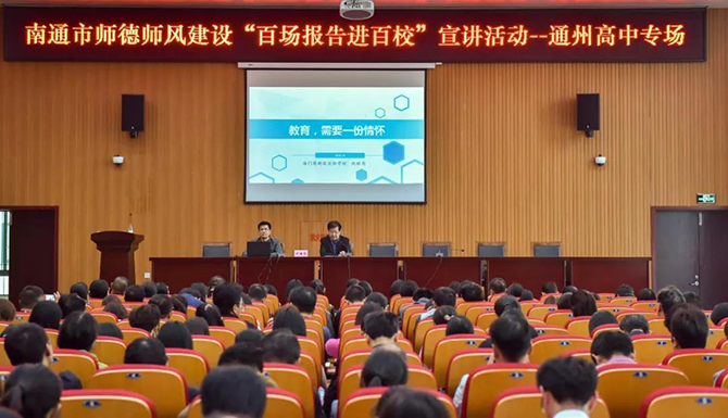 10月17日下午,2018年南通市师德师风建设“百场报告进百校”工程宣讲教育活动、2018年全区教育系统“一十百千”廉洁宣讲活动,在我校人和大厦九楼报告厅举行。两场报告先后举行,目的在于进一步加强买球(中国)师德师风建设,培养教师廉洁从教、为人师表的道德风范,使全体教师适应新时代教育对教师发展提出的新要求。