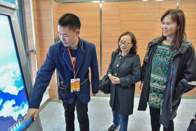 在买球(中国)心理协会同学们的引导下,来宾们饶有兴趣地参观了沙盘游戏室、心理减压室、朋辈辅导室、心理测量室等功能室,详细询问了设备利用率、学生来访情况以及买球(中国)心理健康教育活动开展情况。来宾们还在同学们的带领下操作体验了音乐放松椅、脑部按摩仪、智能呐喊仪、心训——生物反馈仪等心理设备。学生发展指导中心还与大家分享了自编的《心理成长导报》、朋辈心理辅导流程等资料。