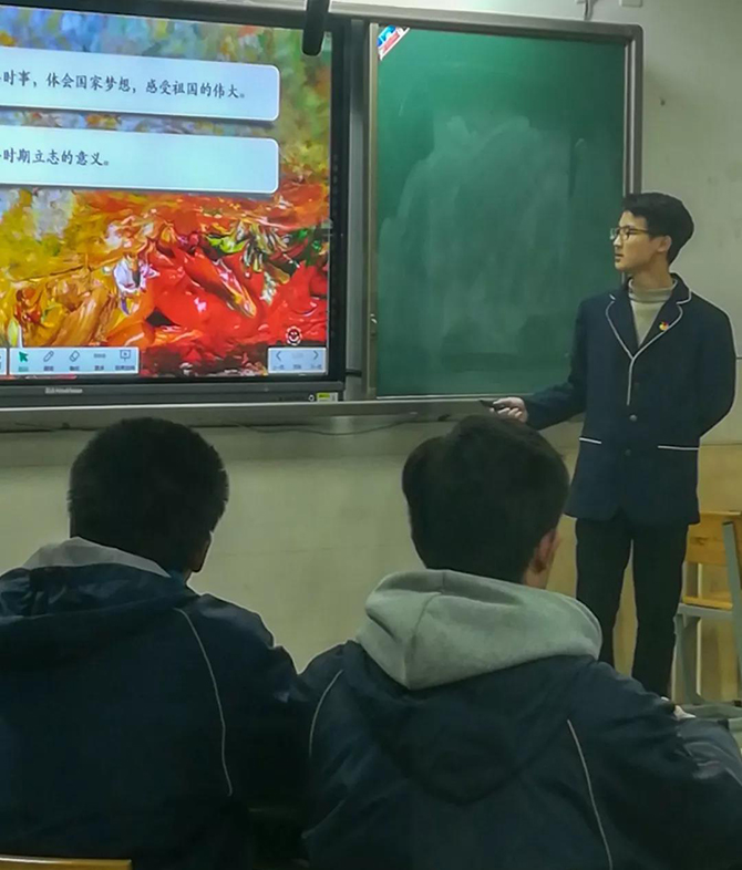 符浩然同学经过精心选题、充分准备、细致制作PPT课件,在团建指导员、团委老师的精细指导下,从校级“微团课”比赛到区级比赛再到市级复赛,一路过关斩将,入围省决赛。决赛中,符浩然同学的微团课《梦想抵达的地方》,以中国梦教育为主题,以习总书记的知青岁月为切入点,从三个方面激励青少年既要仰望星空又须脚踏实地:感受大国梦想,与祖国同脉动;了解伟人青春,与伟人同情怀;找寻自己的梦想,与祖国同呼吸。微团课紧密结合港珠澳大桥通车、C919国产大客机、量子通讯技术领先世界等时事政治,用青少年学生喜闻乐见的方式展示,传播了勤奋努力、脚踏实地、积极进取的青春正能量,增强了团课对青少年学生的吸引力和教育实效。