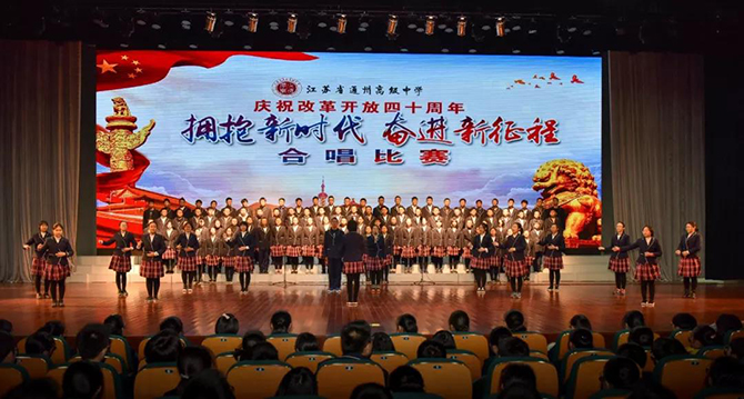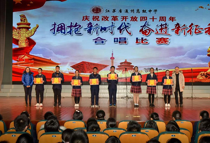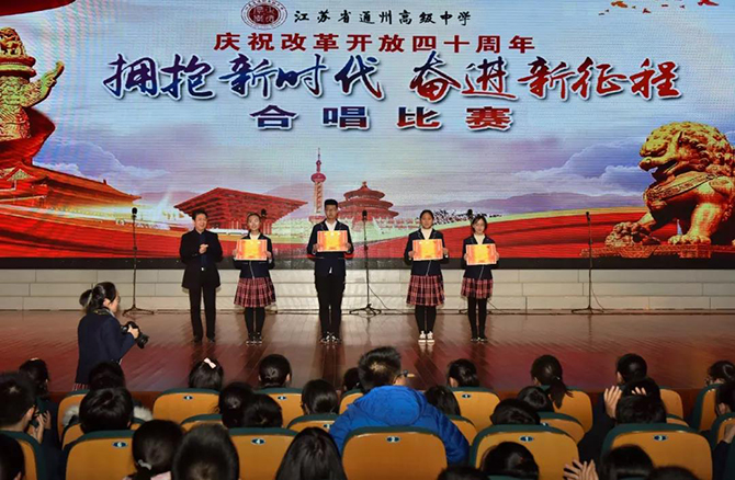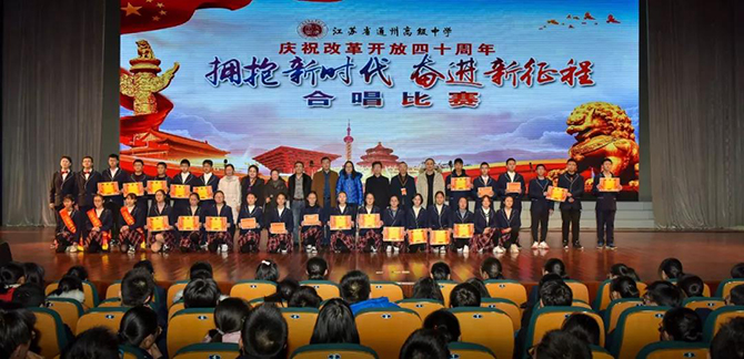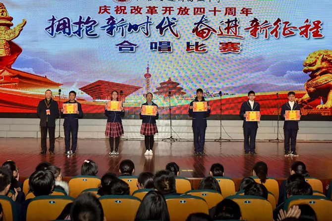 为纪念改革开放四十周年,响应习总书记在全国教育大会上的号召,落实立德树人根本任务,培养新时代中国特色社会主义德智体美劳全面发展的建设者和接班人,12月8日晚我校以“拥抱新时代,奋进新征程”为主题的高一年级合唱比赛在涵礼堂隆重举行。季仲平校长及何忠锋主任、巫灿烨主任、张春明副主任,王建军副主任、团委金丹丹副书记等领导和老师出席了活动。