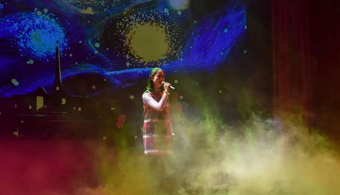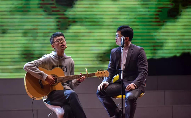 江俊武老师和瞿瑞辰等学生共同演绎歌曲《儿时》,吉他声悠扬地在会场回荡,轻轻拨动师生心弦。沈昜、蔡欣妤、蔡舒涵、邱添等同学带来的小品《青春之歌》收获了无数掌声。曹缪然同学的钢琴独奏《樱花》让人沉醉。