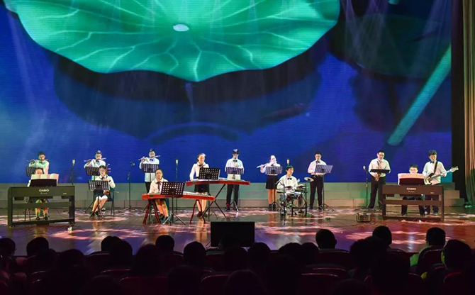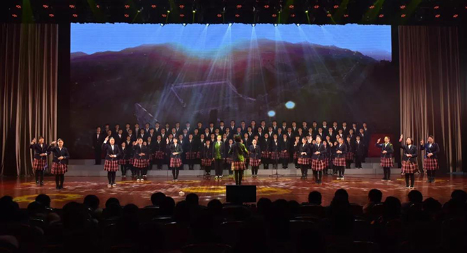 学生乐队创新使用电钢琴、单簧管、长笛、萨克斯、古筝等中西乐器共同演奏的《天空之城》《summer》,和谐美妙,让人耳目一新。舞蹈《月光下》,学生用婀娜的舞姿,把观众带进神秘的彩云之南。朱灿老师一首男声独唱《阳光路上》,唱出祖国的繁荣富强。整场演出以大合唱《国家》《正德厚学、放飞青春》收尾,歌声徘徊,激奋人心!