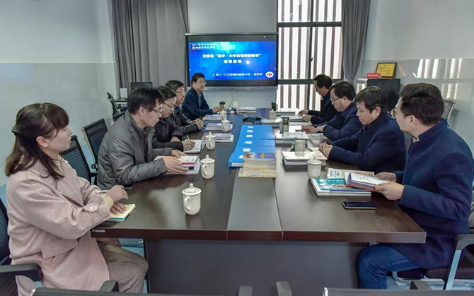 3月6日,江苏省视导专家组一行莅临我校,对江苏省“高中大学英语衔接教学”课程基地进行调研指导。本次视导由江苏省教育厅组织,南通市教育局卢志华副处长、通州区教体局胡清华副局长等领导陪同调研。