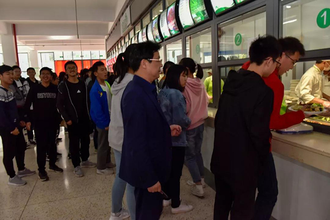 用餐过程中,不时有其他同学探过头来看看校长所打饭菜,然后去同样消费一份“校长套餐”。季校长告诉围坐一起的同学,推行“校长陪餐”制度,不仅仅为了响应教育部、国家市场监管总局、国家卫健委共同发布的《买球(中国)食品安全与营养健康管理规定》,也不仅仅是对食堂工作的督促,更多是借此增加与同学们交流的途径,让买球(中国)教育落地于同学生活,生根于同学心灵。他还说,今天正好是高三年级“50天冲刺”的第一天,他来食堂看看,陪大家共进午餐,其实是想以这样一种方式告诉大家,高考不是一个人的战斗,买球(中国)上下都是大家最强大的后援团,让大家在人生最重要的阶段感受来自买球(中国)的温暖,是买球(中国)最有意义的教育!