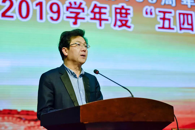 许斌书记发表讲话,他指出:广大青年对“五四”运动的最好纪念,就是在党的领导下,勇做走在时代前列的奋进者、开拓者、奉献者。许书记倡导全体同学发扬“五四”精神,增强社会责任感和历史使命感。