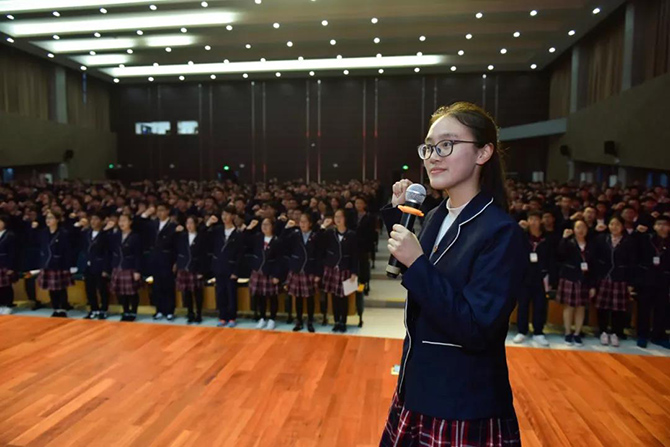 今年是建国70周年、“五四”运动100周年,在这特殊的时刻,学生会主席、高三(20)班班长高楚姗带领全体团员重温入团誓词,不忘初心,砥砺前行。