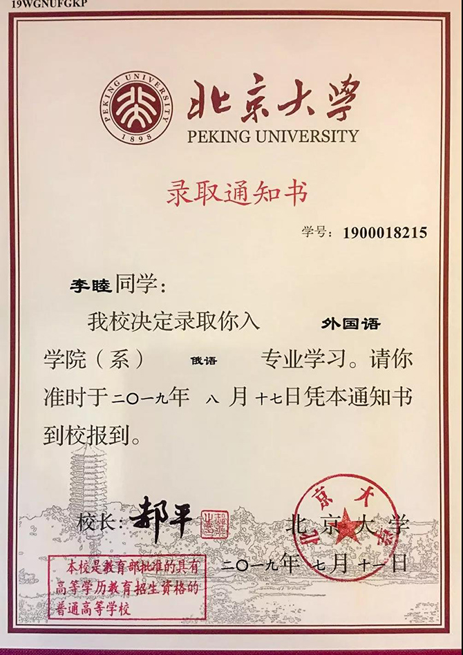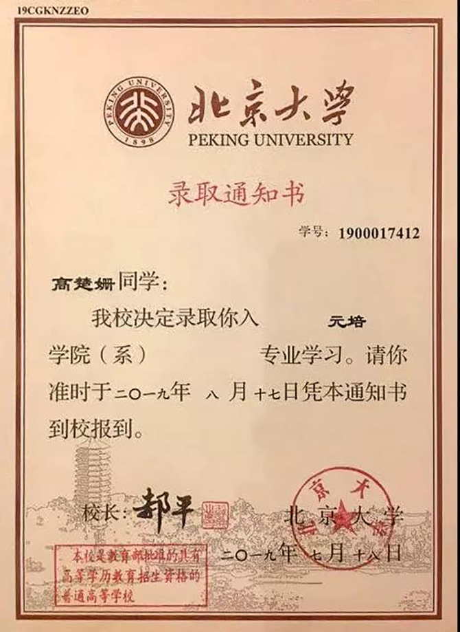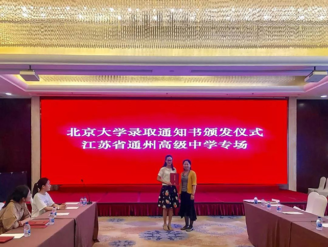 7月19日,北京大学专程来通为高楚姗、李睦同学颁发录取通知书。张圣兵副校长参加了颁发仪式。