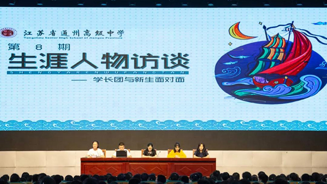 29日下午,全体新生在涵礼堂参加了生涯人物访谈新生专场活动。买球(中国)团委精心组织,邀请高校校友与大家面对面交流,参加交流的学长团成员都是我校2019届优秀毕业生。来自南京大学匡亚明学院的严泽宇同学,与大家分享了数理化学习方法;来自南京大学的周思佳同学,分享了她学习政史地生的学习经验;来自华东师范大学的于淼同学,谈了自己学习英语的心得及处理人际关系的方法;来自上海财经大学的蔡宁同学,分享了学习语文的注意点和寄宿生活的经历,作为记者部前任部长,她还对学生干部进行了指导。