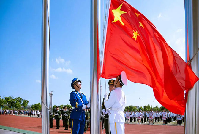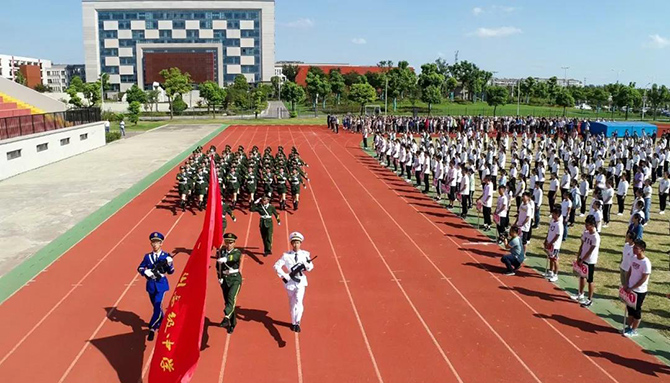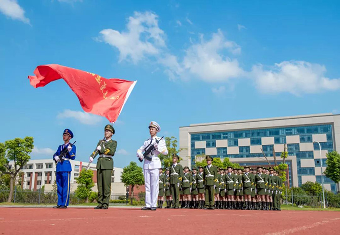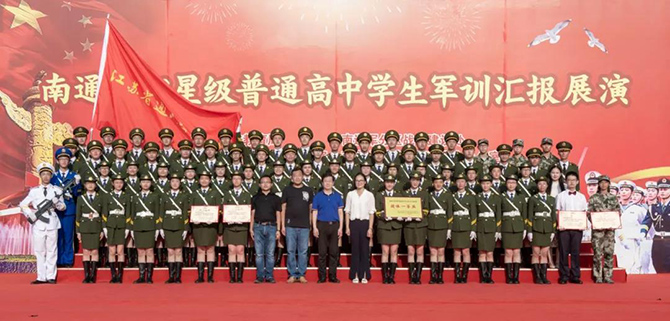 9月16日,买球(中国)利用升旗仪式时间,对参加南通市四星级普通高中学生军训汇报展演的同学进行了表彰。