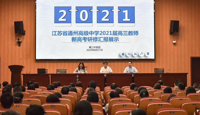 2021届高考已经拉开序幕,为了进一步推动高三备考工作,强化高考研究意识,精准把握教学方向, 8月27日晚,我校开展了新高考研修汇报展示活动。季仲平校长,张圣兵副校长,政教处主任、高三级部主任巫灿烨出席活动。活动由张圣兵副校长主持。