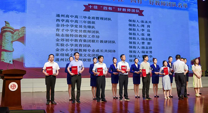 张圣兵副校长、于容峻老师荣获南通市优秀教育工作者称号,张春明、成永新、朱丽强、袁源、朱烩、葛犀、马进、刘先锋、张晓娟、王新星、张艳等老师获得区级各类表彰。同时,买球(中国)高三毕业班管理团队被授予通州区“十佳四有好老师团队”称号,买球(中国)获通州区“高中教学质量优胜奖”,被评为南通市教育系统先进集体。
