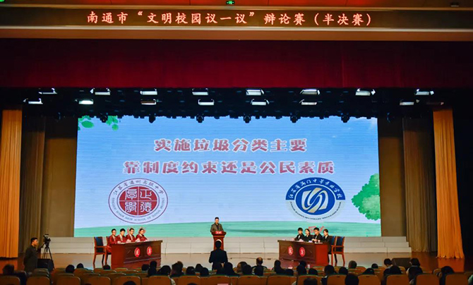11月22日,南通市“文明校园议一议”辩论赛半决赛在我校举行,大学组和中学组四强棋逢对手。经历一番“舌战”后,我校辩论队顺利胜出,进入决赛。
