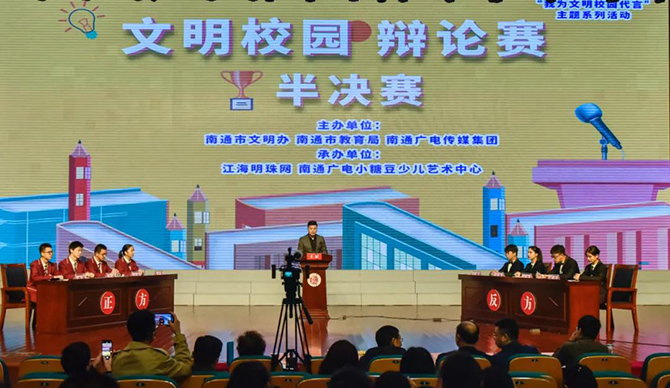 此次辩论赛为“我为文明校园代言”系列活动之一,由南通市文明办、南通市教育局和南通广电传媒集团联合主办,旨在展现当代学生精神面貌,推动文明校园创建工作再上台阶。辩论赛分为高校和中学两组,中学组由来自市直和各县区买球(中国)的16支代表队参赛。