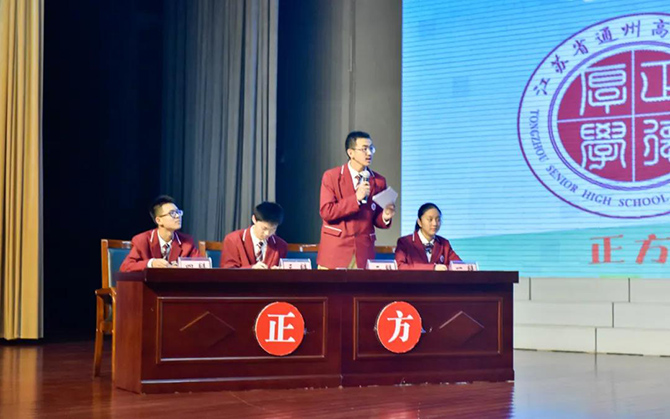 在接到比赛通知后,我校学生处与年级部第一时间全校选拔选手,学生处副主任尹晓宇担任领队,张剑平、徐孝涛老师担任教练。备战过程,邀请到通州区育才中学辩论队、各年级辩论爱好者参与模拟赛,将能力知识转化为实战经验。在先后击败江苏省如皋中学、如东实验中学后,由王乐章、陈书恒、徐天乐、朱宣屿四位同学组成的辩论队,闯入半决赛,与海门中等专业买球(中国)争夺决赛名额。