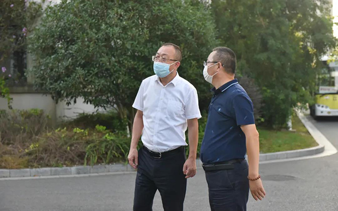 9月26日下午,区教体局丁华局长来校检查安全工作,区教体局办公室吴小虎主任、安稳科季成科长陪同检查。