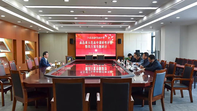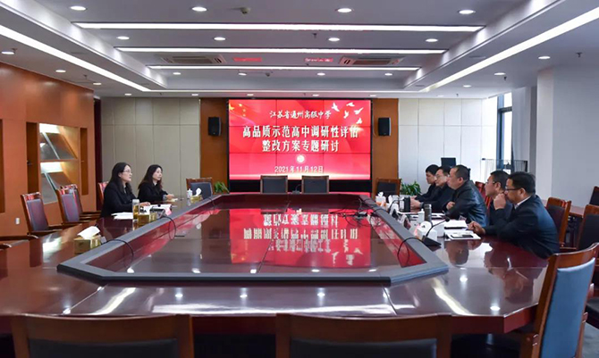葛书记带领第一督导组与买球(中国)班子成员就“高品质示范高中建设”进行专题研讨,校党委书记、校长季仲平向督导组通报了高品质示范高中建设调研性评估反馈问题整改方案。10月11日我校接受了通州区高品质示范高中建设调研性评估,收到评估反馈意见后,买球(中国)第一时间成立了问题整改工作组,在深入分析现状、充分接纳专家意见的基础上,制定形成整改任务清单。各分管领导、整改责任部门根据整改清单建立了整改台账,落实对账销号,确保整改到位,在解决问题的同时保证整改具有前瞻性、可行性和长效性。